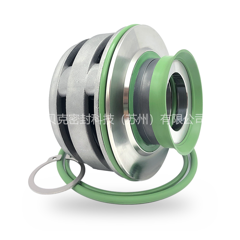 基本特点结构:双端面压力:高压转速:高转速温度:高温特性:耐腐蚀标准:特殊定制平衡:平衡型轴径范围:30 mm到120 mm运转参数:工作压力:0 ~ 2.0 MPa工作温度:- 20 ~ 180 ºC线速度:不大于20 m/s冷却水压力:0.1 ~ 0.4MPa固体颗粒含量:不超过20%材料配对:动环密封面:碳化硅/碳化钨静环密封面:碳化硅/碳化钨辅助密封:氟橡胶/三元乙丙胶/Aflas/聚四氟乙烯/全氟醚橡胶弹簧:SS304/SS316/HC-276金属件:410S/SS304/SS316/SS316L/双相钢2205介质:油、水、纸浆、石膏浆液、酸、碱、溶剂